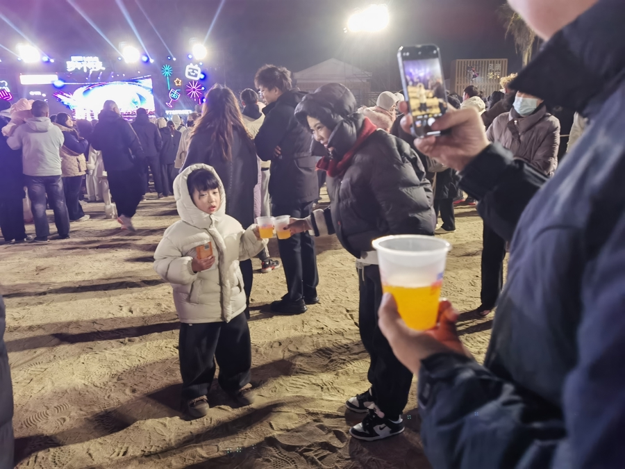 云层轻笼着滨海夜空,带着湿意的海风徐徐掠过沙滩,裹挟着冬日的凛冽寒意,但现场涌动的人潮与高涨的热情,瞬间驱散了这份冷意,处处洋溢着跨年的火热氛围。